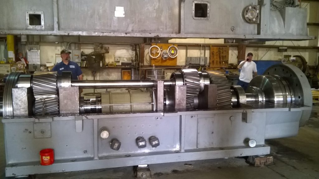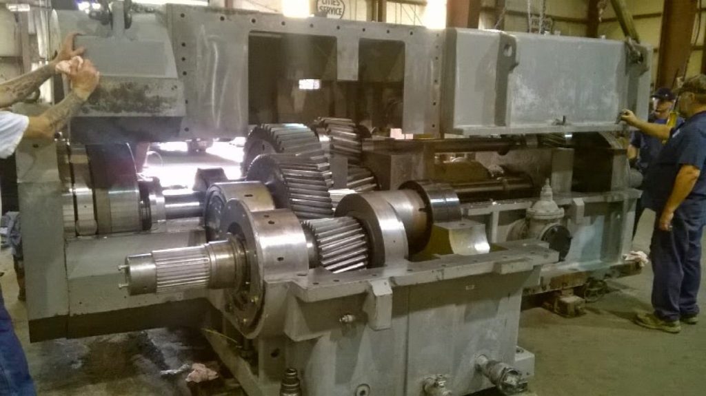 We begin with a shaft and oil condition inspection. We check for contamination, heat scoring, tooth wear, and preload issues. Runout and vibration readings are taken if the unit is still online.
